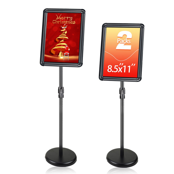 Adjustable Heavy Duty Pedestal Sign Holder Floor Stand, Sign Stand Poster Stand, Standing Floor, 8.5 x 11 inch, Vertical & Horizontal View, Outdoor Indoor Standing Display Sign Holders Aluminum Black