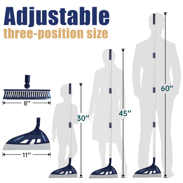 - Upgraded Adjustable Design - 60'' long Aluminum extension rod of floor squeegee broom is more sturdy but light which allows you to sweep the floor comfortably upright instead of bending over. It can be adjustable , detachable and assembled at will.